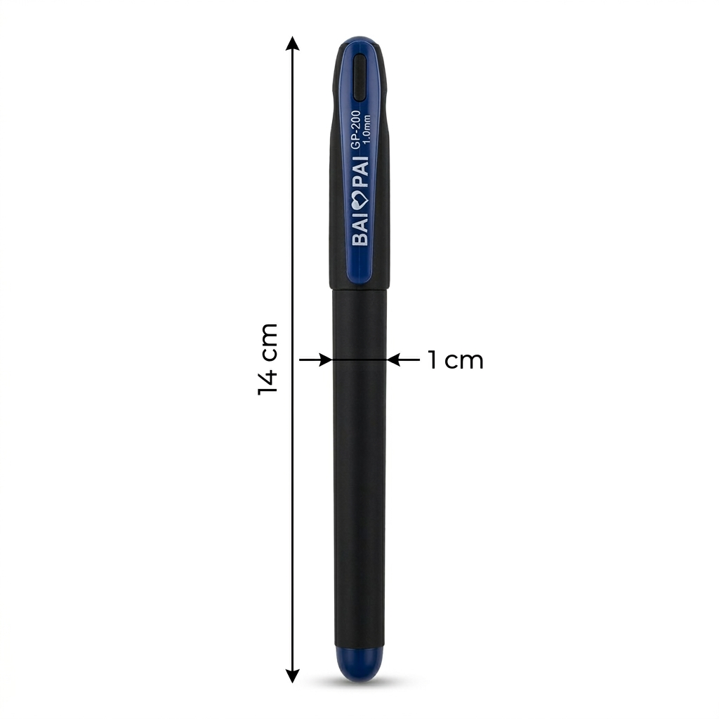 بطول 14 سم تقريبًا، يتميز قلم أزرق سن 1.0 بحجم مناسب يسهل وضعه في المقلمة، الحقيبة، درج المكتب، أو حتى الجيب.