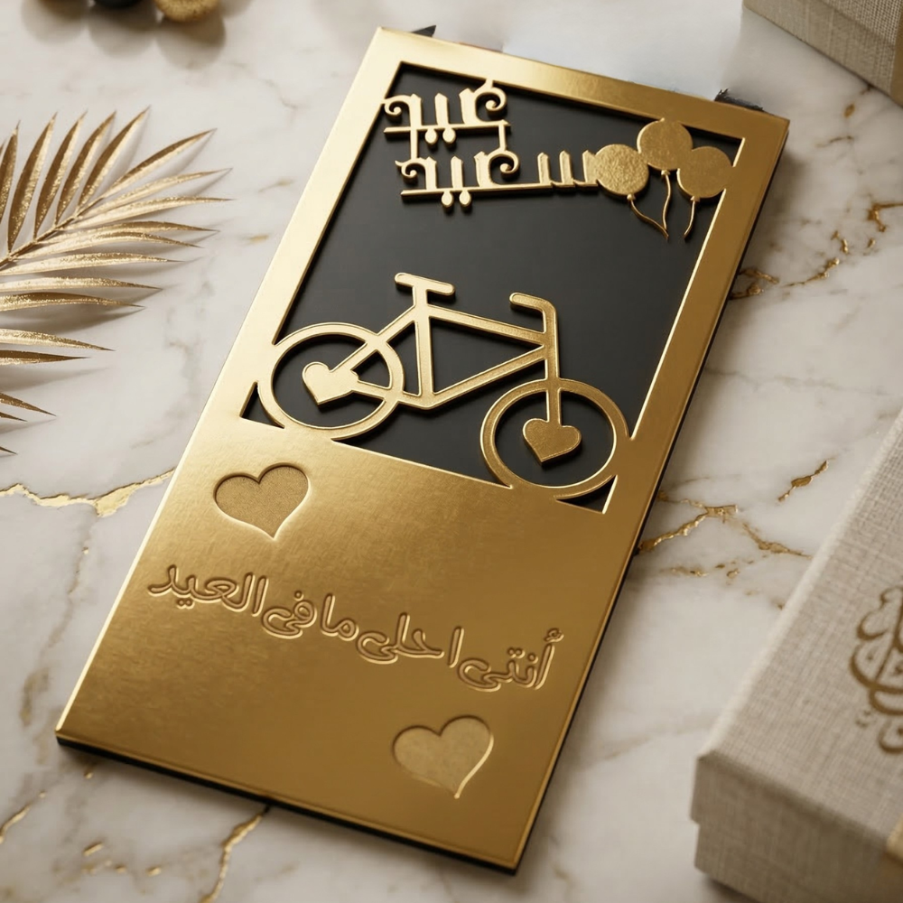 إذا كنت تبحث عن طريقة أنيقة ومميزة لتقديم العيدية في الأعياد، فإن كارت عيدية خشب بتصميم عيد سعيد هو الخيار المثالي الذي يجمع بين الفخامة والبساطة في نفس الوقت. يتميز هذا الكارت بتصميم فني جذاب مصنوع من الخشب مع إطار ذهبي أنيق وتفاصيل مميزة مثل عبارة “عيد سعيد” مع زخارف القلوب والدراجة التي تضيف لمسة رومانسية جميلة.