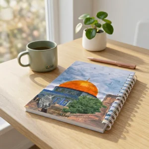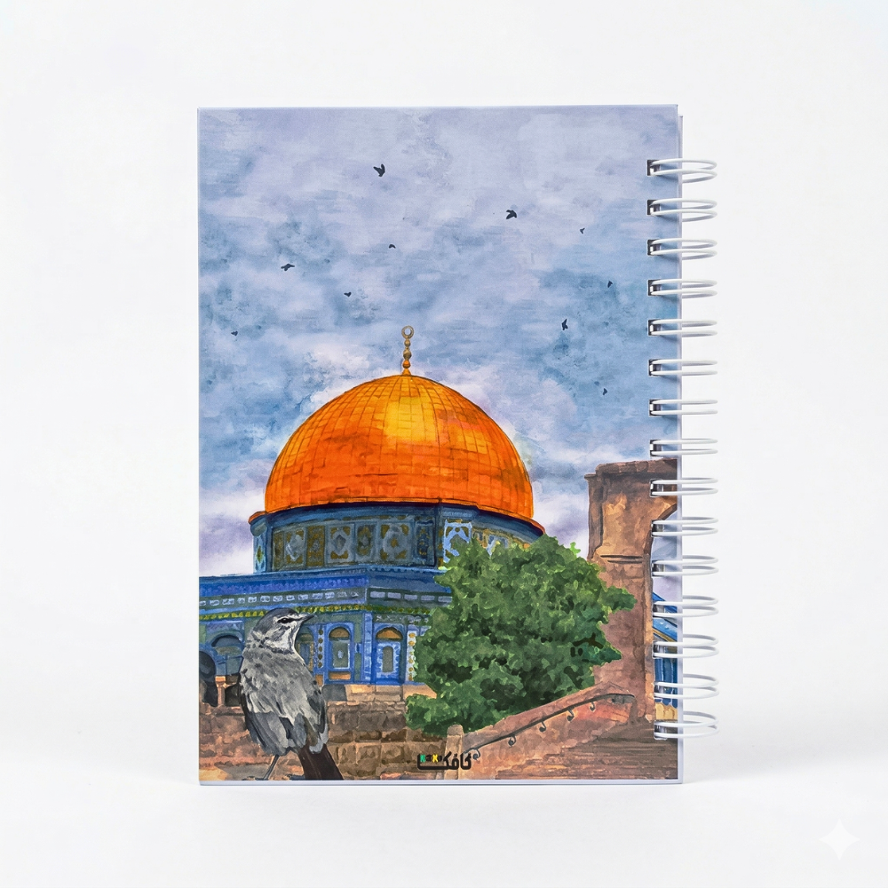 كشكول بسلك مقاس 21.5×15.5 سم بتصميم قبة الصخرة – نوت بوك أنيق للمذاكرة والكتابة اليومية