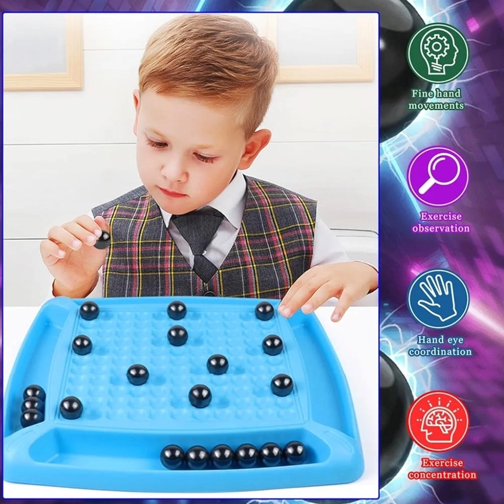 إحدى أهم مزايا اللعبة هي الكرات المعدنية المغناطيسية عالية الجودة. تمتاز هذه الكرات بالقوة والمتانة واللمعان المعدني الجذاب، مما يجعلها مريحة في الاستخدام وذات مظهر جميل. المغناطيس الموجود داخل اللوحة مُصمم بطريقة مدروسة ليجذب الكرات عند نقاط معينة ويتركها مستقرة عند نقاط أخرى، مما يجبر اللاعبين على التفكير في كل خطوة مسبقًا.