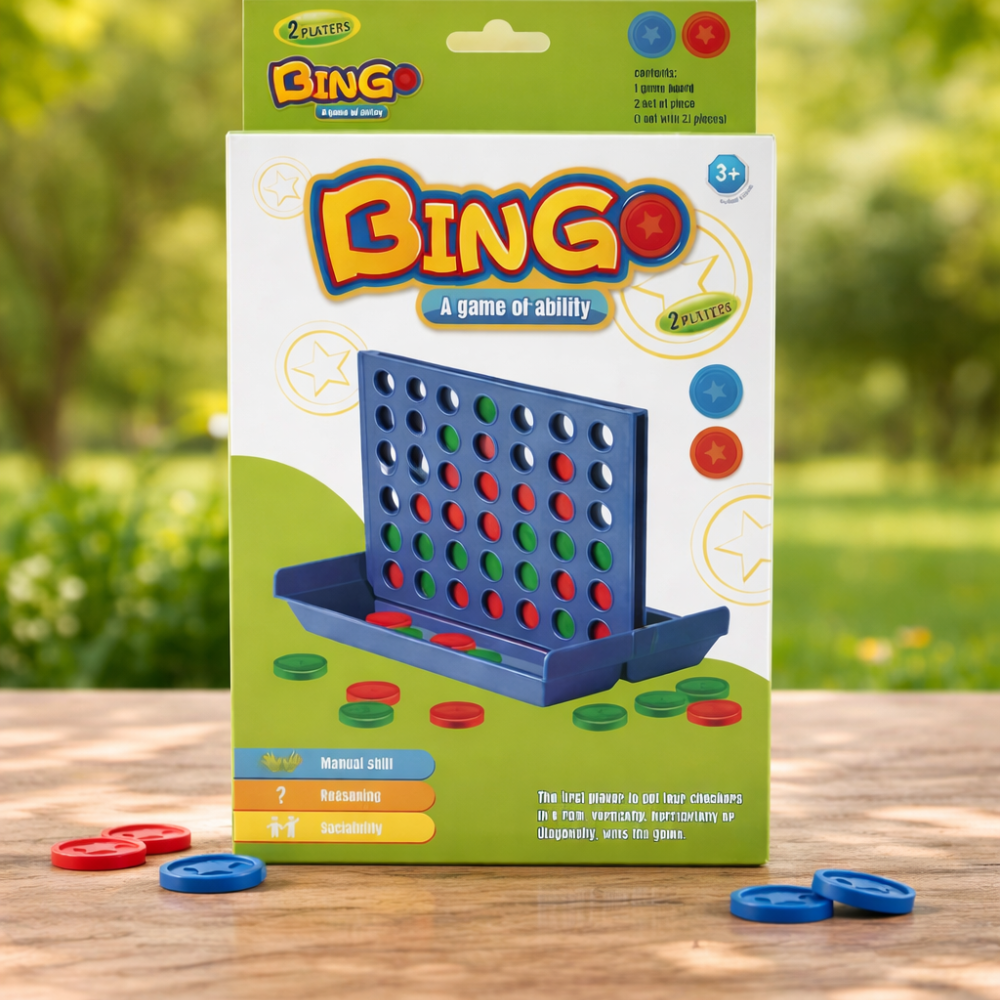 تم تصميم لعبة بينجو للأطفال بشكل جذاب وألوان مبهجة تجذب انتباه الأطفال من أول نظرة. تعتمد اللعبة على فكرة بسيطة لكنها ممتعة للغاية، حيث يتنافس لاعبان في محاولة تكوين أربعة أقراص متتالية سواء بشكل عمودي أو أفقي أو قطري. هذه الفكرة تجعل لعبة بينجو للأطفال من الألعاب التي تنمي روح التحدي والمنافسة بطريقة ممتعة.