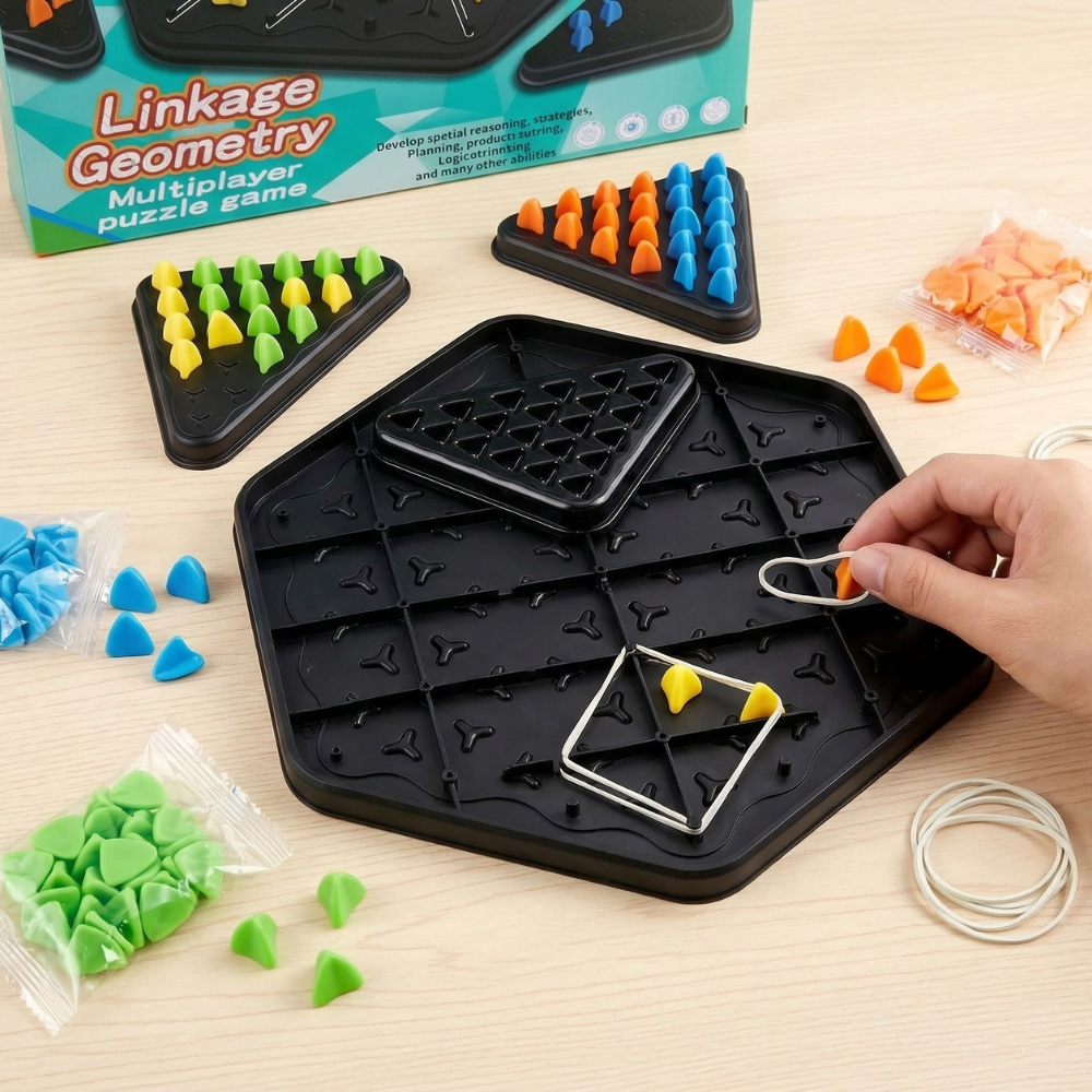 لعبة ذكاء هندسية تعليمية ممتعة للأطفال والكبار، تساعد على تنمية التفكير المنطقي، التخطيط، والتركيز من خلال تركيب الأشكال وربط القطع المطاطية بطرق متعددة. مناسبة لعمر +3 سنوات، وتدعم اللعب الجماعي حتى 4 لاعبين، مما يجعلها اختيارًا مثاليًا للتعلم والمرح في نفس الوقت.