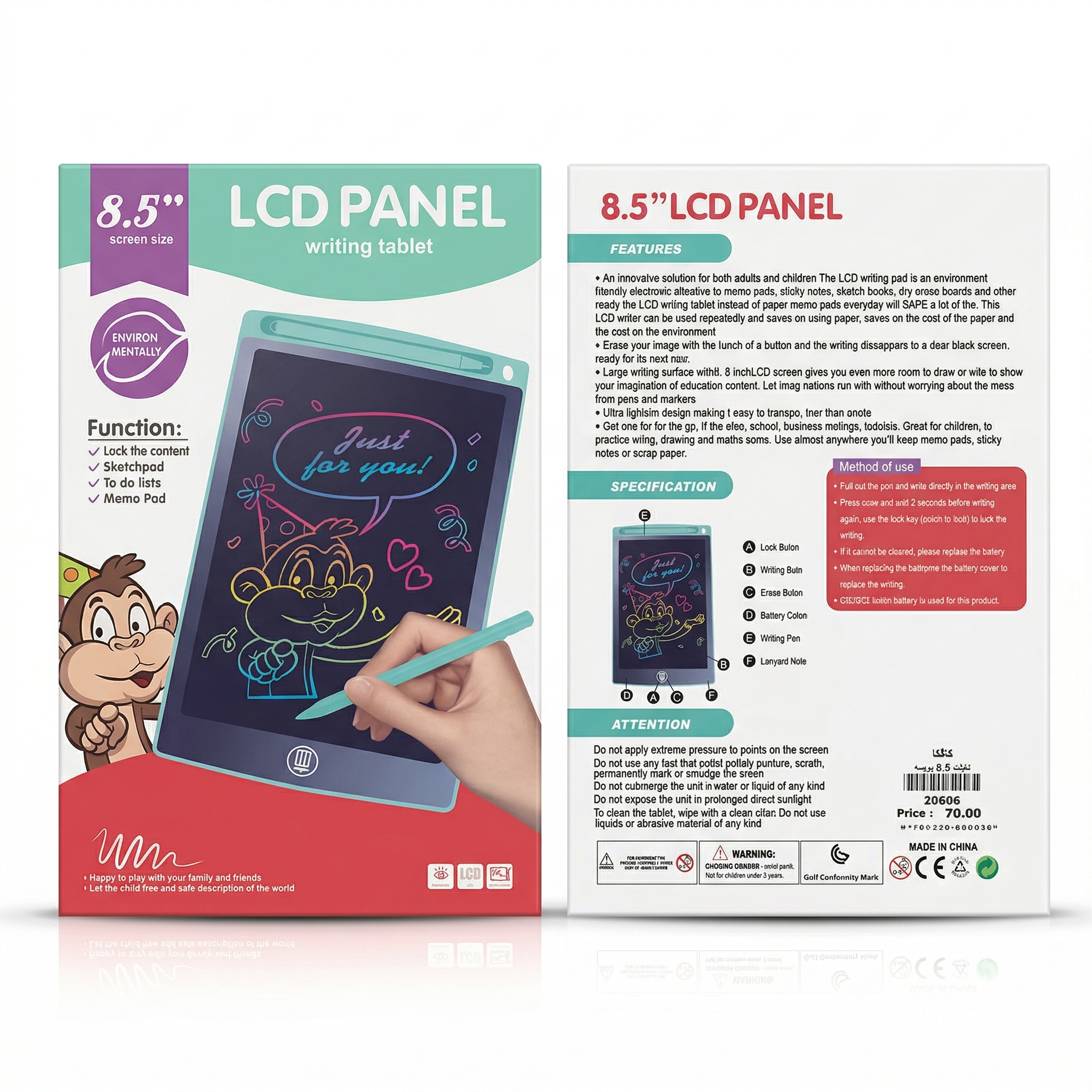 لوح كتابة LCD هو الحل المثالي للأطفال والكبار للكتابة والرسم والتدوين بطريقة سهلة وعملية. يأتي بشاشة مقاس 8.5 بوصة مع قلم مخصص للكتابة، ويتميز بإمكانية المسح بضغطة زر واحدة، مما يجعله مناسبًا للتعليم، الرسم، الملاحظات اليومية، وتنمية مهارات الأطفال الإبداعية. تصميم خفيف الوزن وسهل الحمل، مناسب للاستخدام في المنزل، المدرسة، السيارة، أو أثناء السفر.