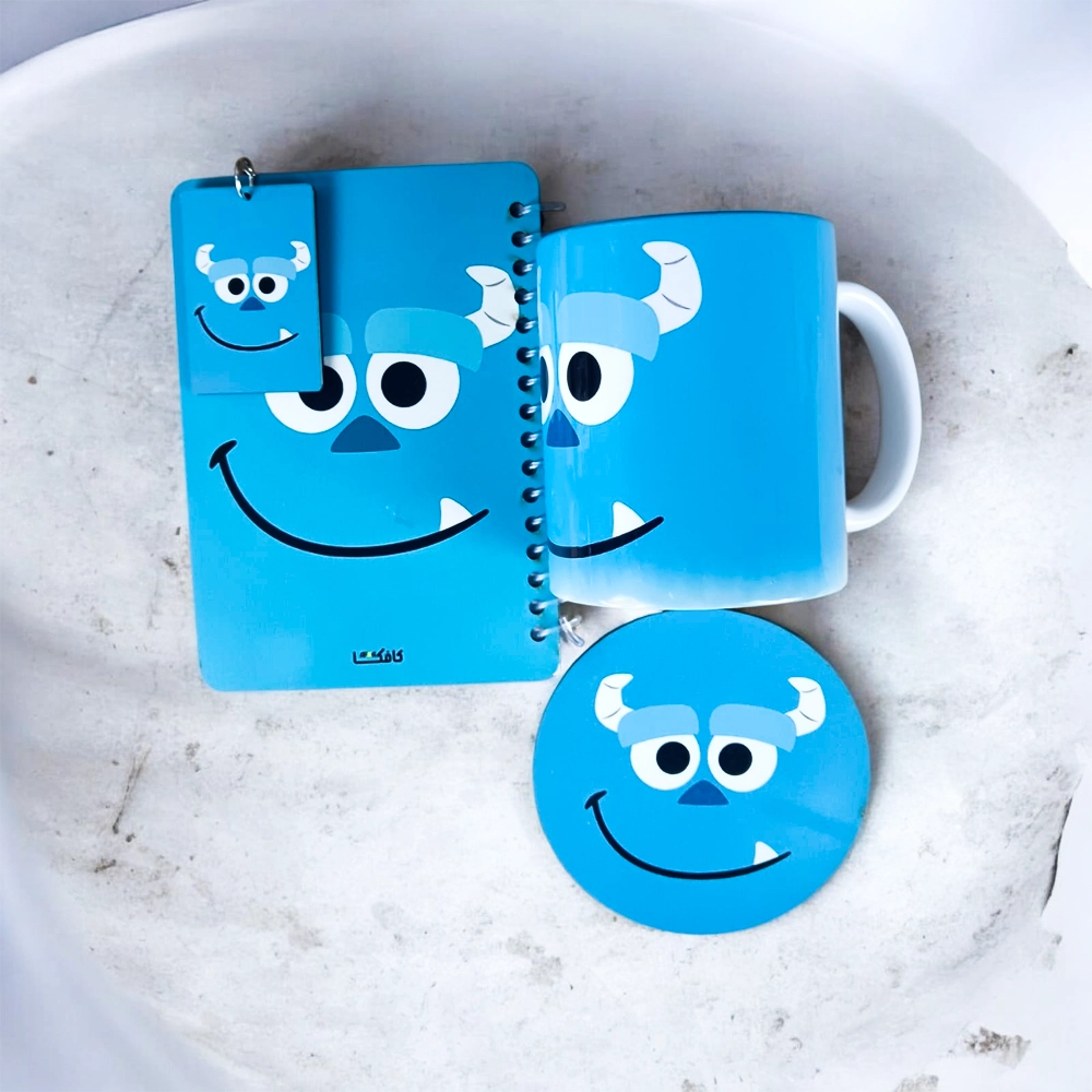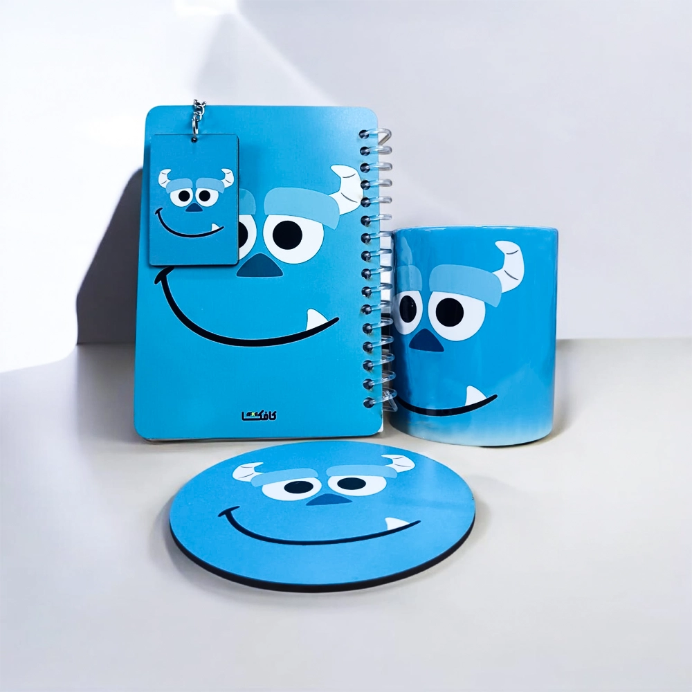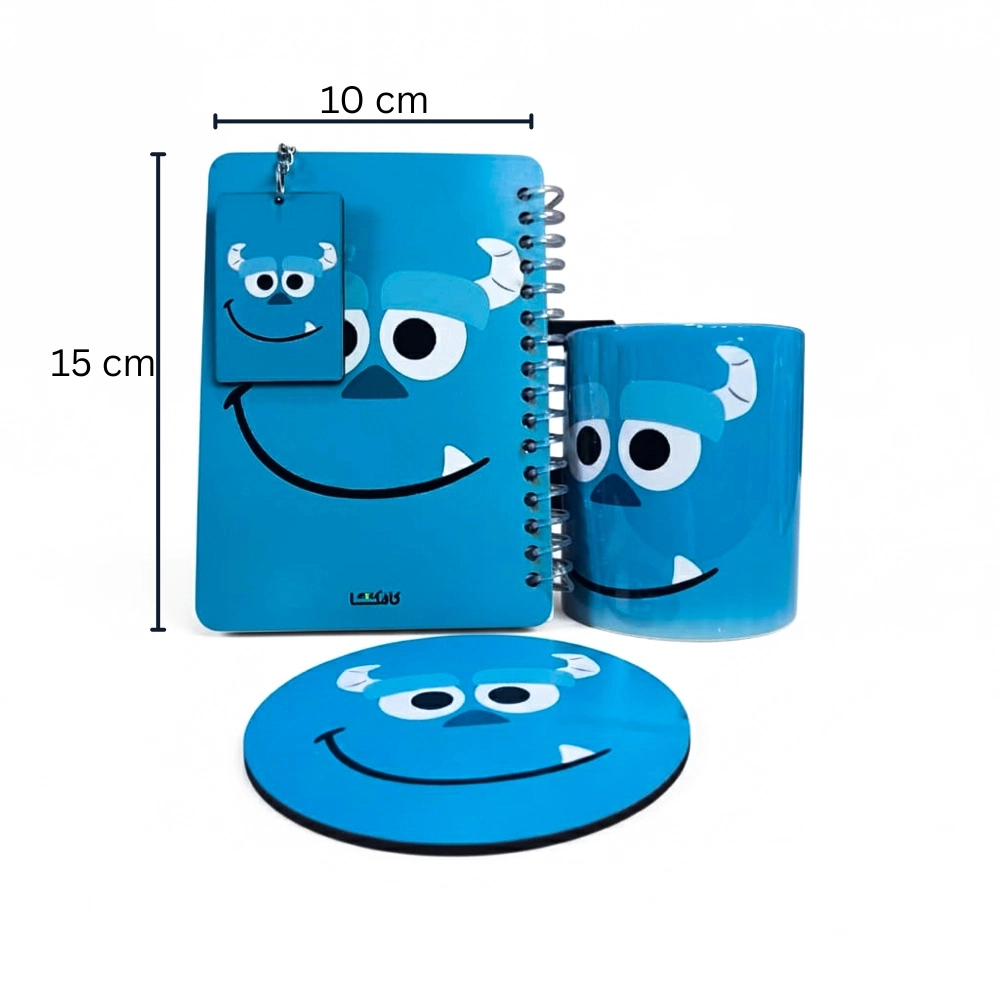 مجموعة هدايا شلبي كيوت بتصميم كرتوني أزرق – مج بورسلين + نوت بوك سلك + كوستر + ميدالية مفاتيح