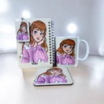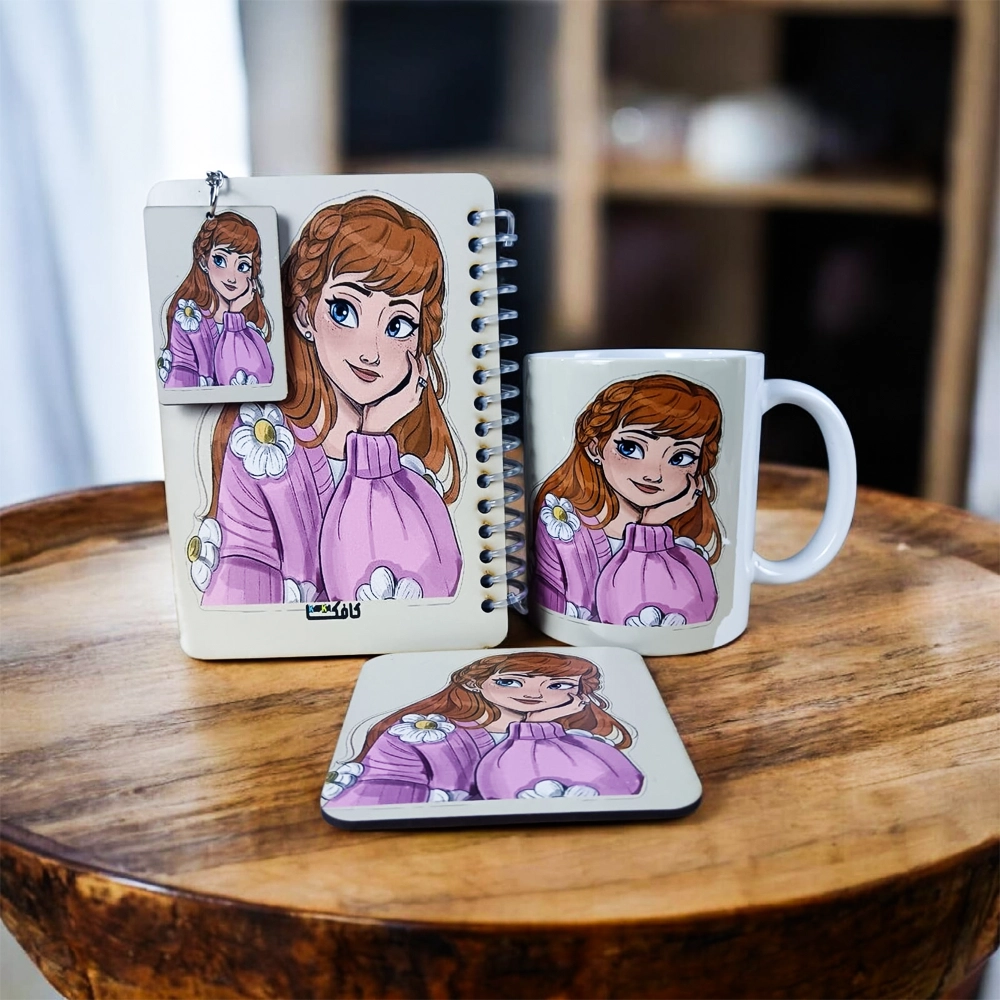 مجموعة هدايا كيوت للبنات – مج بورسلين + نوت بوك سلك + كوستر + ميدالية بتصميم كرتوني أنيق