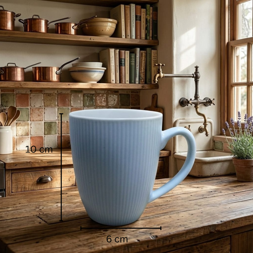 عند استخدام كوب مصمم بعناية، تتحول لحظة شرب القهوة أو الشاي إلى تجربة حسية متكاملة. ملمس السطح الخارجي المخطط يمنح إحساسًا لطيفًا عند لمسه، بينما السطح الداخلي الأملس يسهّل انسياب المشروب بسلاسة نحو الحافة. هذا التوازن بين الملمس الخارجي والنعومة الداخلية يجعل كل استخدام تجربة مريحة وغير مزعجة.