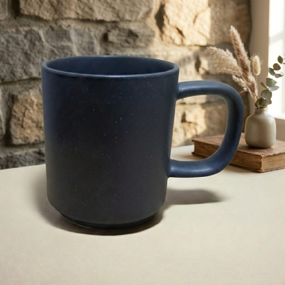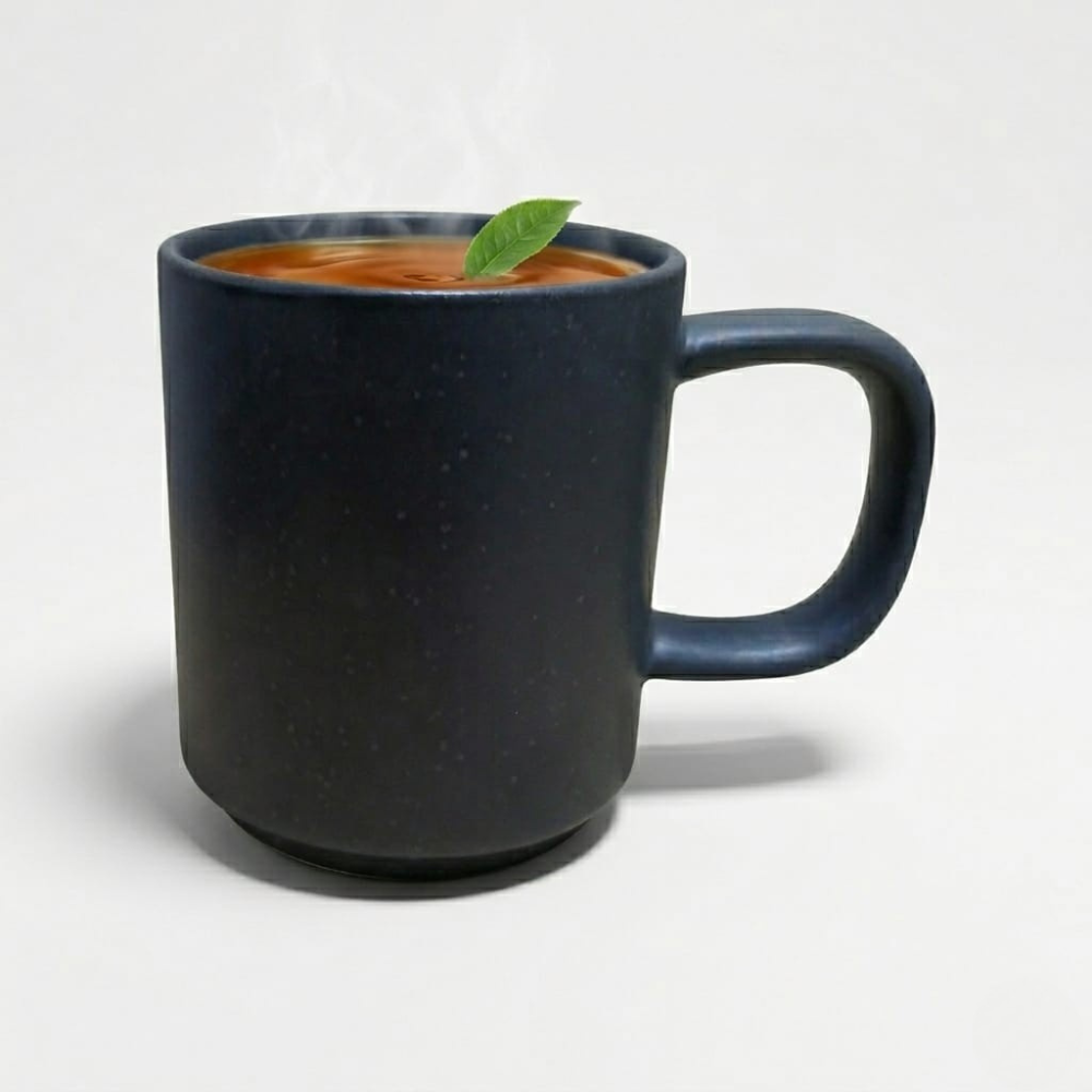 وجود كوب بهذا اللون داخل المطبخ أو على طاولة المكتب يمنح المكان مظهرًا أنيقًا. كما أن اللون الداكن يساعد في إخفاء آثار الاستخدام اليومية مثل بقع القهوة أو الشاي مقارنة بالألوان الفاتحة.