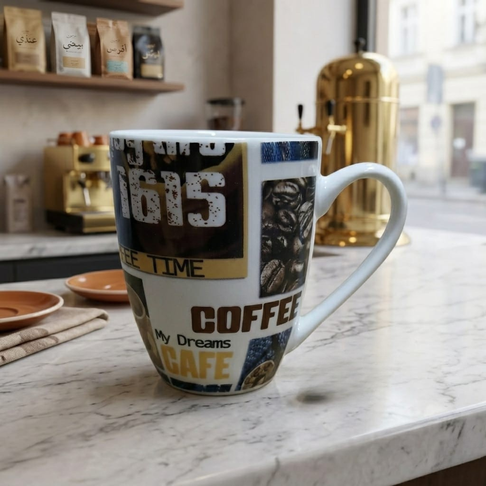 إذا كنت من الأشخاص الذين لا يبدأ يومهم إلا بفنجان قهوة مميز، فإن مج بورسلين قهوة بتصميم Coffee Time هو الاختيار المثالي لك. يجمع هذا المج بين التصميم العصري والخامة المتينة ليمنحك تجربة شرب قهوة ممتعة في كل مرة تستخدمه فيها.