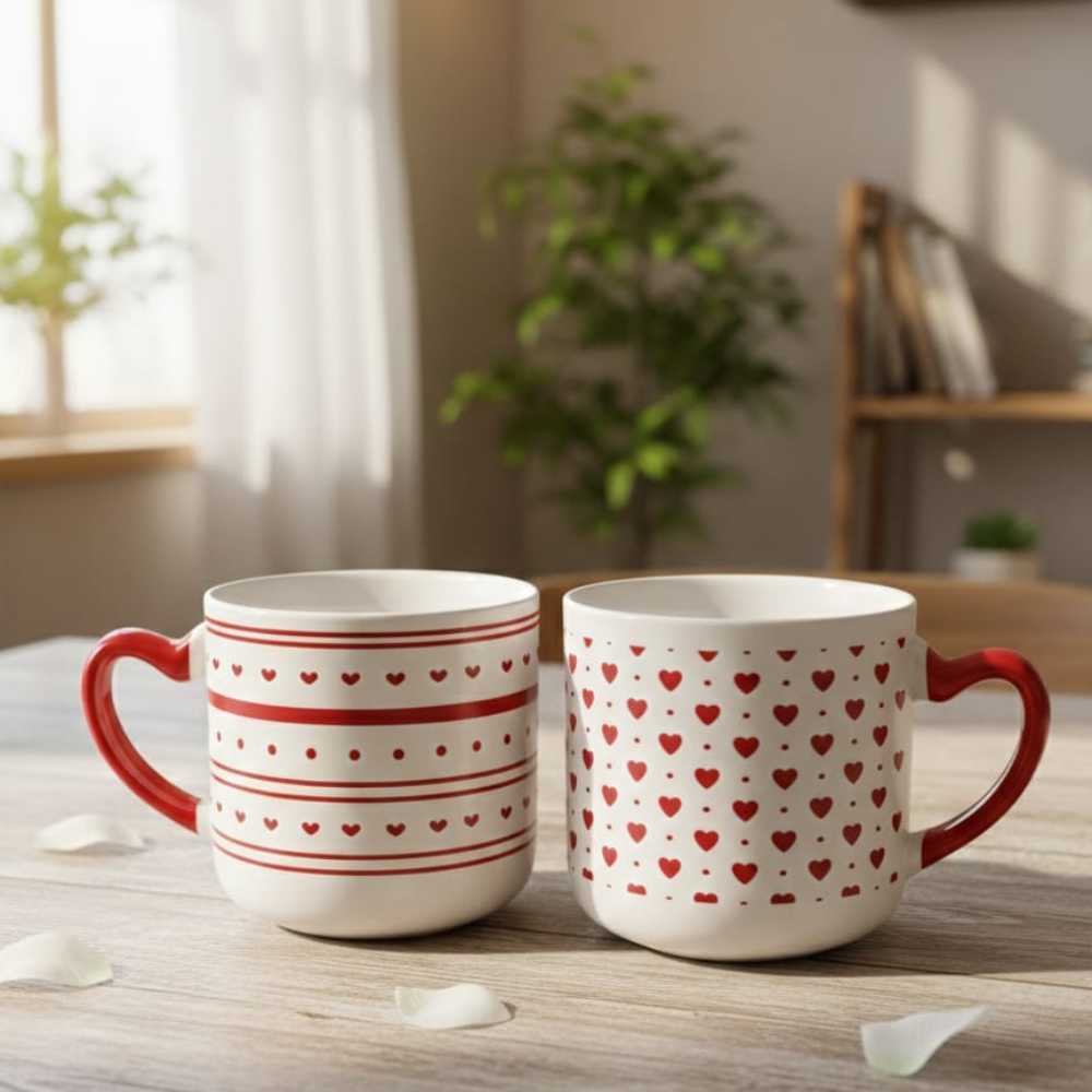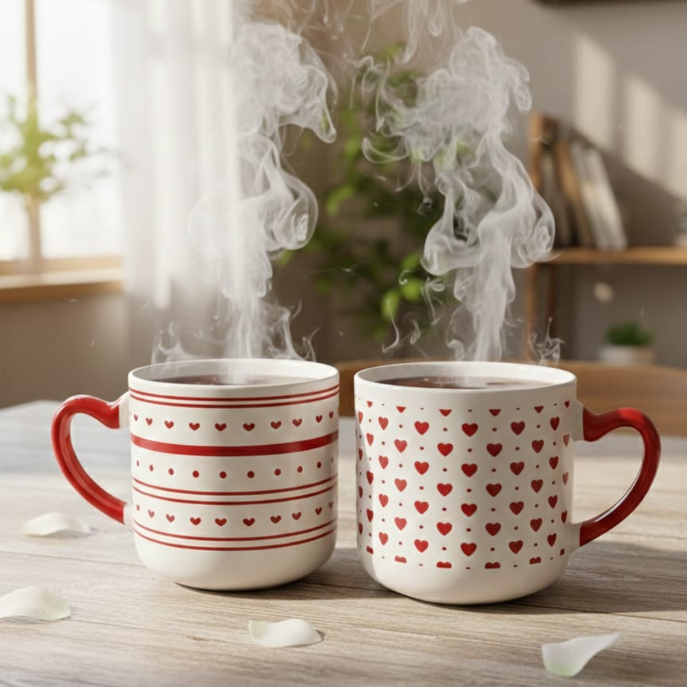 عندما تمسك مج قلوب بيد قلب بفضل المقبض المصمم على هيئة قلب، ستشعر بفرق واضح عن المجات التقليدية. الإحساس البصري واللمسي يضيف قيمة عاطفية حقيقية لكل مرة تستخدمه فيها.