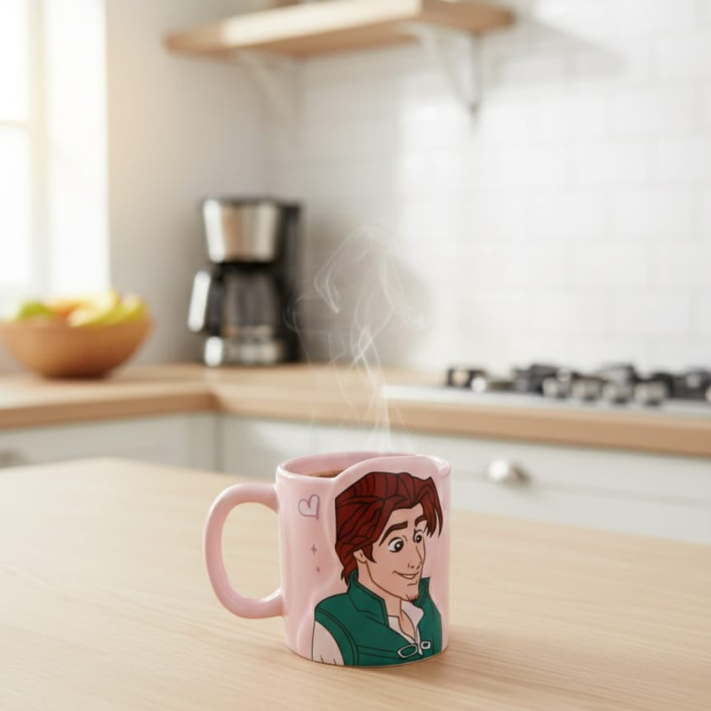 يمكن تصوير مج كابلز روبانزل بجانب كتاب رومانسي، أو أمام نافذة مع إضاءة طبيعية، ليعكس أجواء هادئة وحالمة.