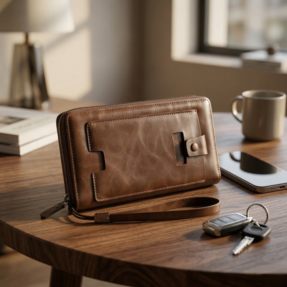 🏆 لماذا تختار محفظة يد جلد بني؟
