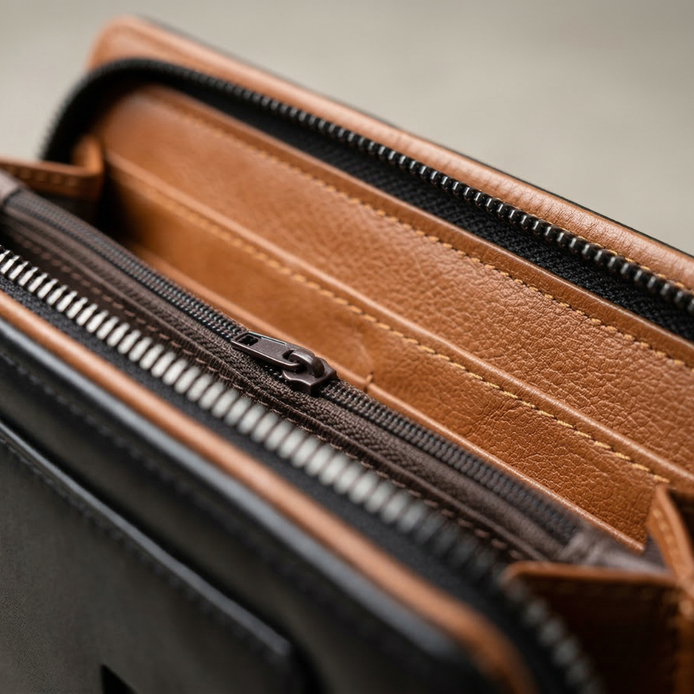 كما أن وجود السحاب يوفر مستوى إضافيًا من الأمان، حيث يمنع سقوط المحتويات أثناء الحركة أو أثناء فتح المحفظة. هذه الميزة مهمة للغاية خاصة أثناء السفر أو أثناء التواجد في الأماكن المزدحمة.
