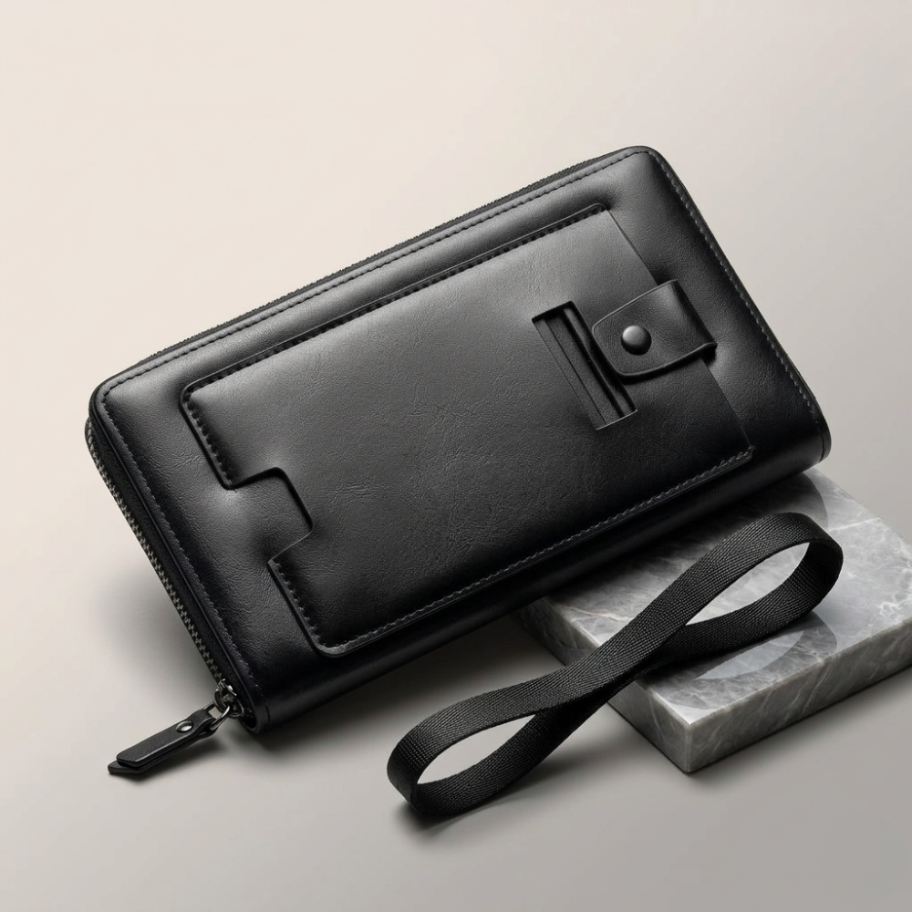 كما أن وجود السحاب الخارجي في محفظة يد رجالي جلد اسود يضيف مستوى إضافيًا من الأمان، حيث يمنع سقوط المحتويات أثناء الحركة أو أثناء فتح المحفظة.
