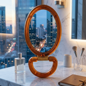 عند تنسيق مراية عسلي بيضاوية مع صينية عطور أو منظم مجوهرات، تحصلين على ركن أنيق يشبه الصور الاحترافية المستخدمة في متاجر الديكور العالمية.