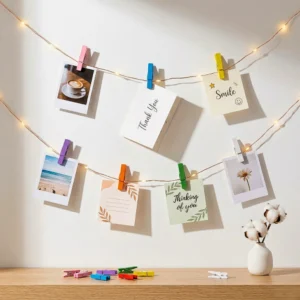 من أهم مميزات مشابك خشب صغيرة هو الحجم العملي الذي يجعلها مناسبة للصور الصغيرة، البطاقات، والكروت.