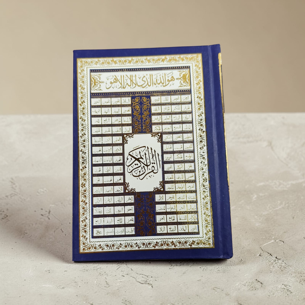 كل تفصيلة في هذا مصحف فاخر تم تنفيذها بدقة؛ من اختيار اللون الكحلي العميق الذي يرمز إلى السكينة والوقار، إلى الزخارف الذهبية التي تمنحه لمسة ملكية تليق بكتاب الله.