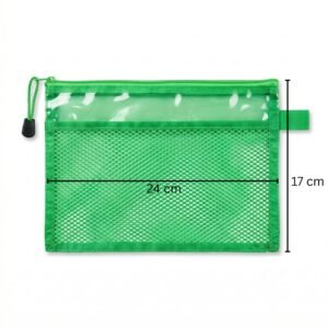 مقلمة شبك شفافة خضراء بتصميم عملي وأنيق، مناسبة لحفظ الأقلام والأدوات المدرسية بشكل منظم. تأتي بمقاس 24 × 17 سم مع سحاب قوي وخامة شبك شفافة تساعد على رؤية المحتويات بسهولة، مثالية للمدرسة والجامعة والمكتب.