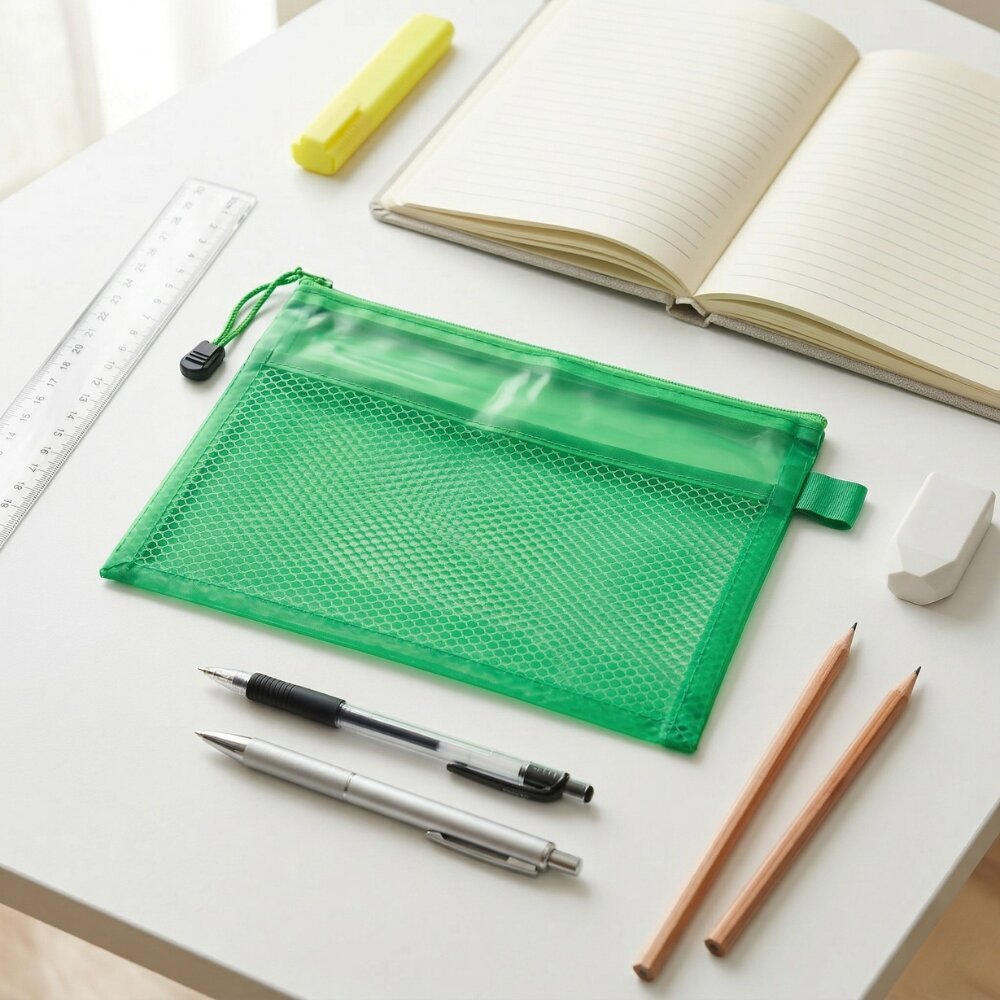 ليست فقط للطلاب، بل يمكن استخدام مقلمة شبك شفافة خضراء في المكتب لحفظ: