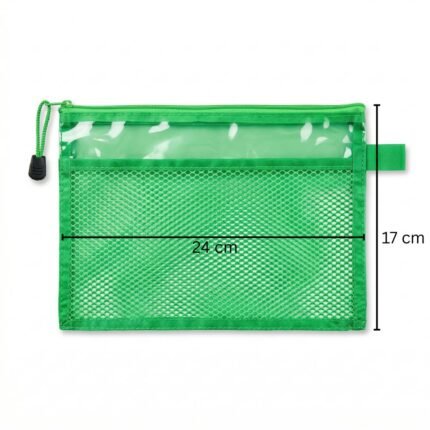 مقلمة شبك شفافة صفراء بتصميم عصري وعملي، مناسبة لحفظ الأقلام والأدوات المدرسية والمكتبية بشكل منظم. تأتي بمقاس 24 × 17 سم مع سحاب قوي وخامة شبك شفافة تساعد على رؤية المحتويات بسهولة، مثالية للمدرسة والجامعة والمكتب.