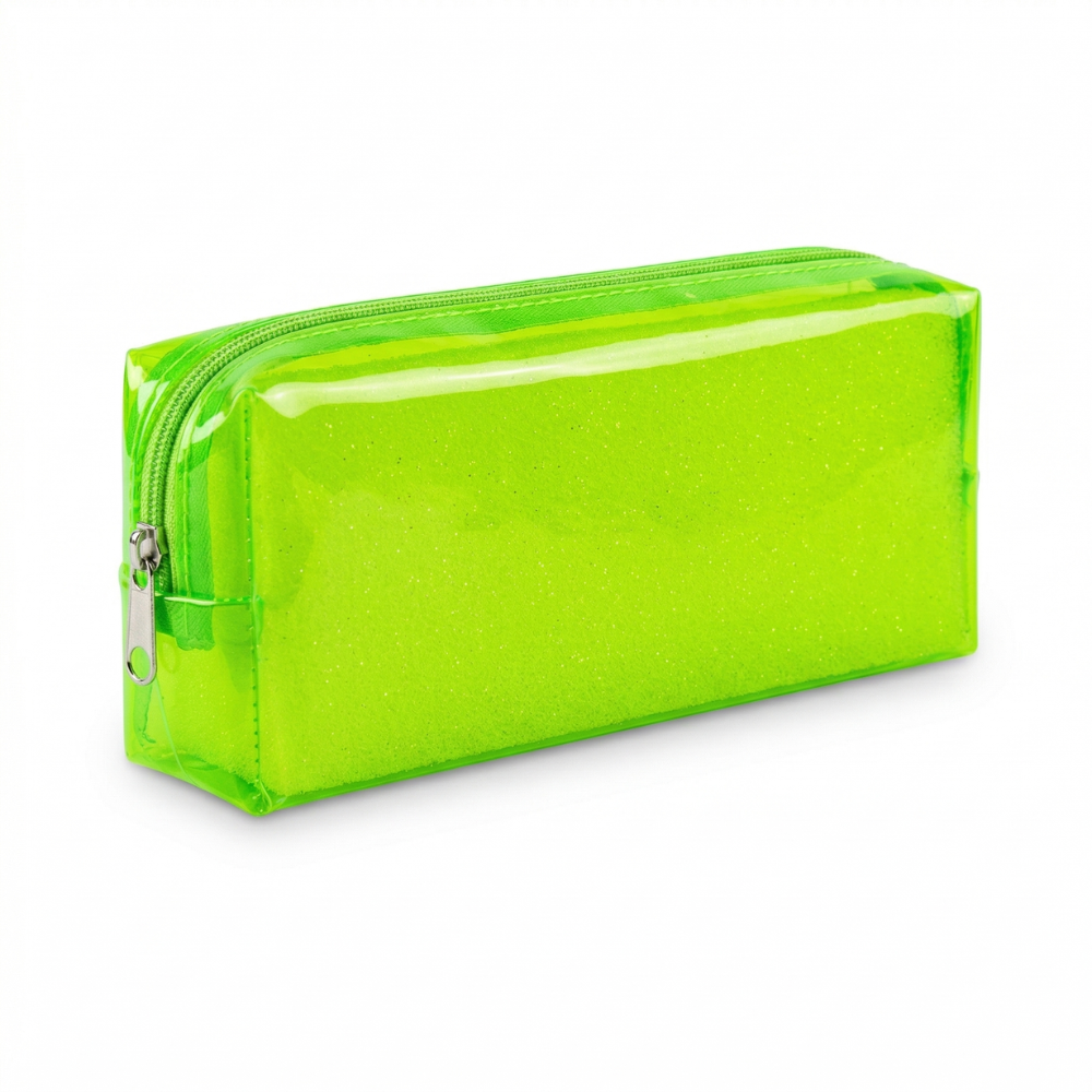 مقلمة شفافة أخضر فلورسنت بلاستيك مقاومة للماء – شنطة أقلام بسحاب بمقاس 20×8×3 سم