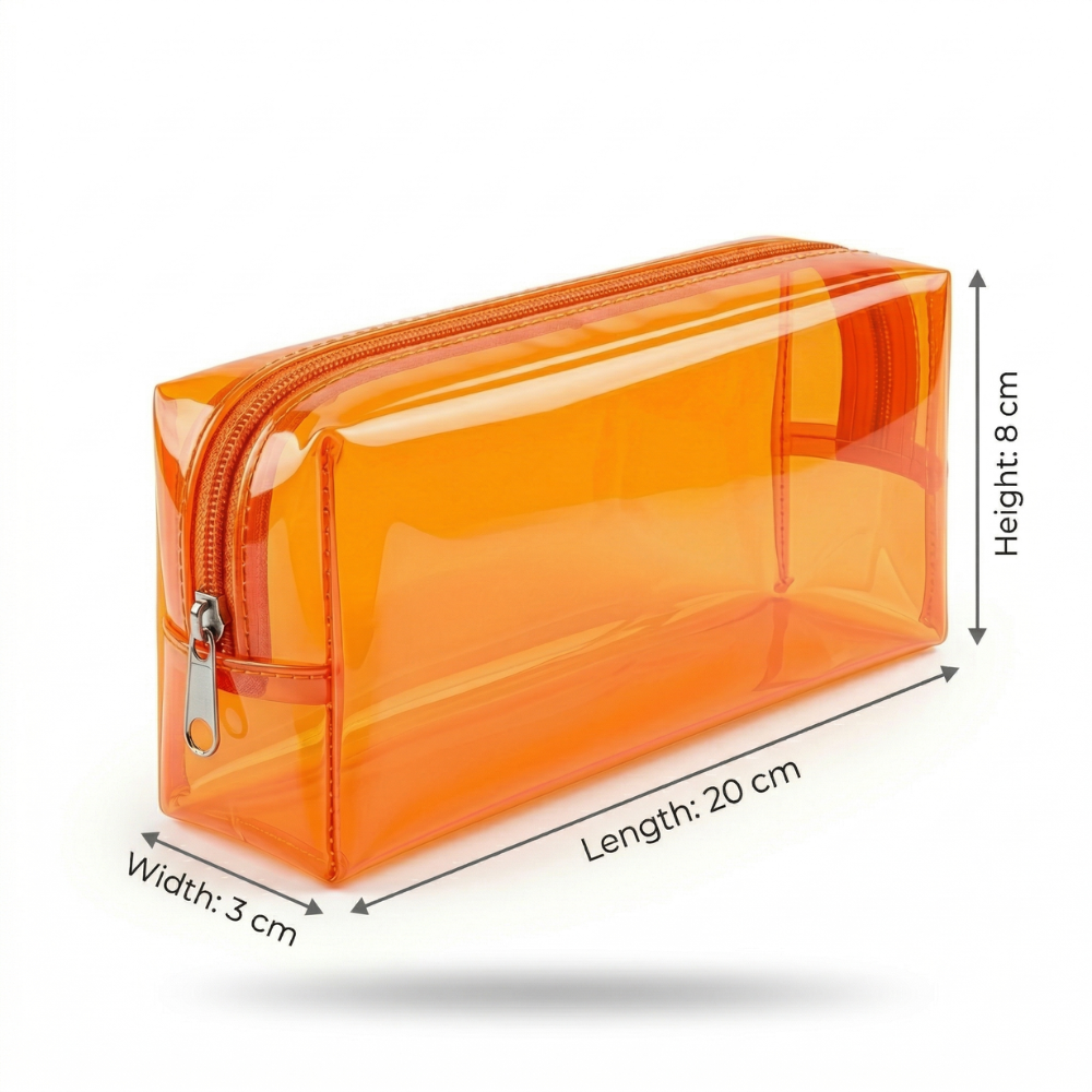 احصل على تصميم عملي وعصري مع مقلمة شفافة برتقالى المصنوعة من بلاستيك متين ومقاوم للماء، بحجم مثالي 20×8×3 سم يناسب الاستخدام اليومي. تتميز بسهولة رؤية المحتويات، وسحاب قوي للاستخدام الطويل، مما يجعلها الخيار الأمثل للمدرسة، الجامعة، أو العمل.