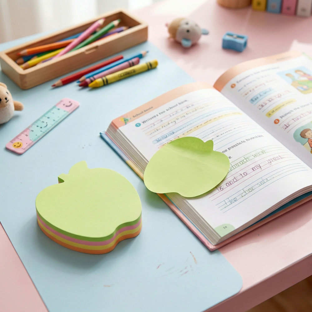 التصميم ليس مجرد شكل جميل، بل عنصر مؤثر نفسيًا. شكل التفاحة يرتبط بالمدرسة، التعلم، والمعرفة. لذلك تعتبر هذه ملاحظات لاصقة خيارًا مثاليًا للطلاب والمعلمين وأولياء الأمور.