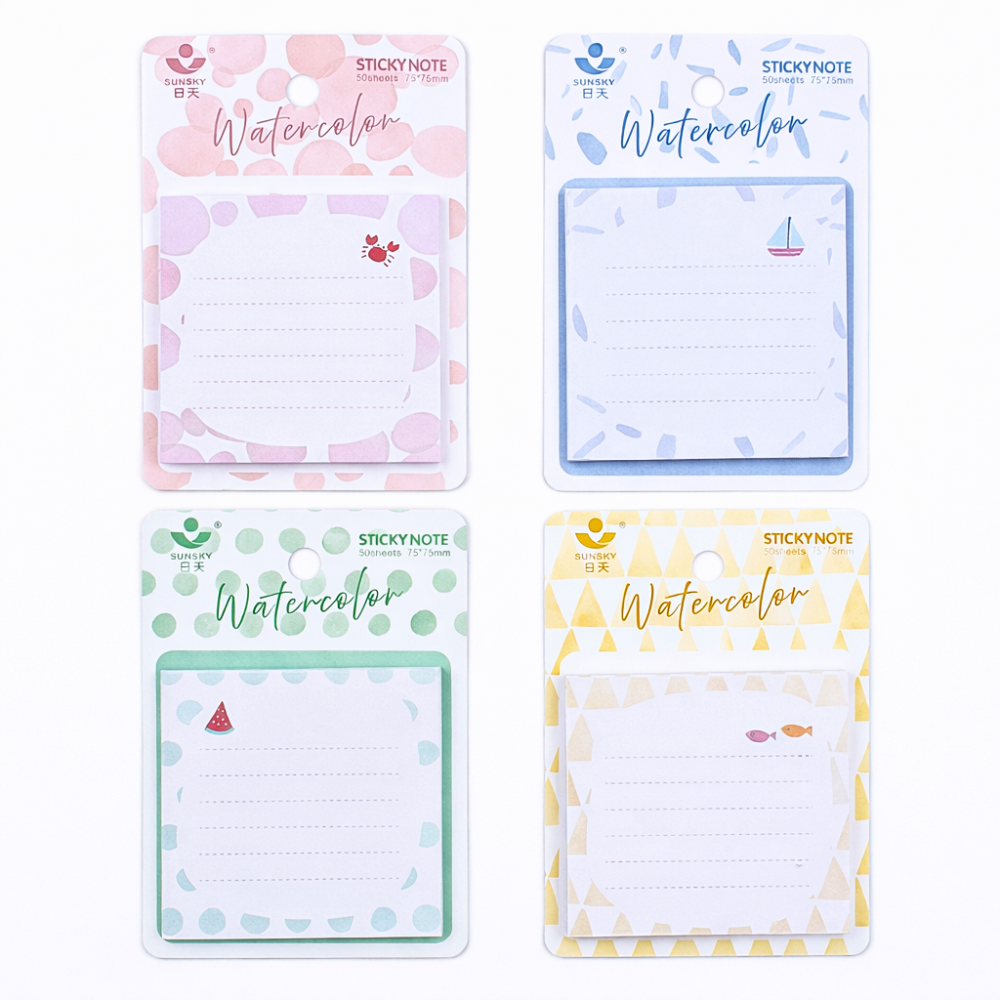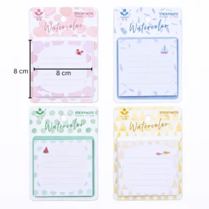 ملاحظات لاصقة مربعة 8×8 سم بتصميم Watercolor كيوت – 50 ورقة Sticky Notes للمذاكرة والتنظيم (4 أشكال متنوعة)