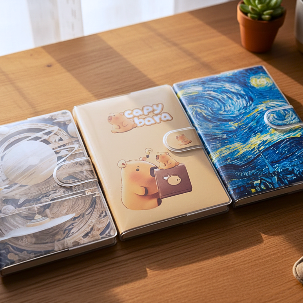 وجود تصميم فني مميز يخلي المنتج مختلف عن أي دفتر تقليدي. الشكل الجذاب بيخليك تحب تستخدمه أكتر، وده بيزود احتمالية الالتزام بالكتابة.
