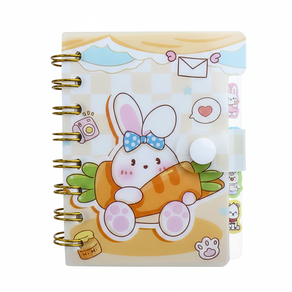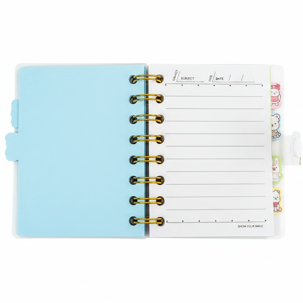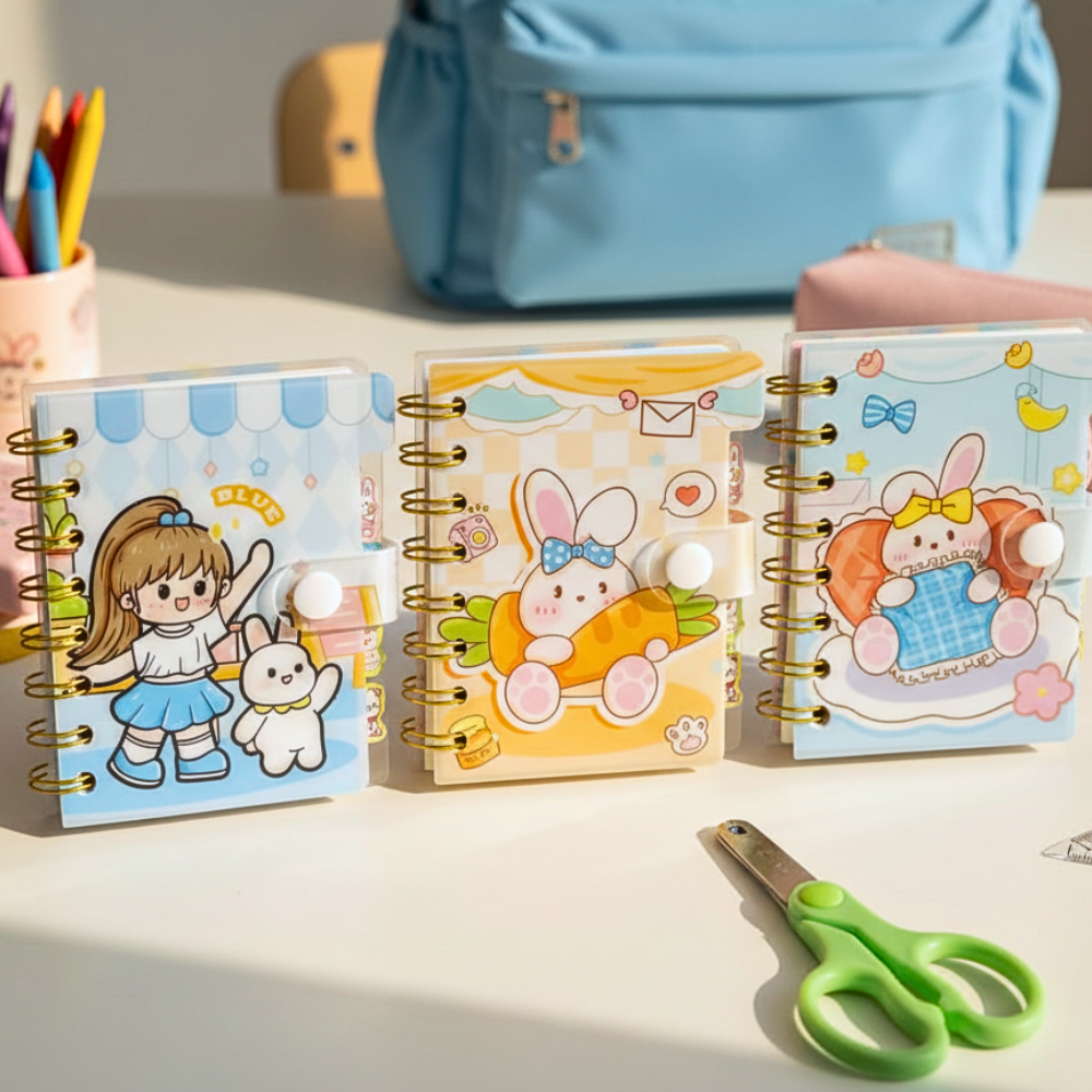 نوته صغيرة بسلك بحجم عملي 8 × 11.5 سم، تصميم كيوت برسوم طفولية جذابة وغلاف متين يحافظ على الصفحات. مناسبة للمدرسة والجامعة وتدوين الملاحظات اليومية، خفيفة وسهلة الحمل داخل الشنطة أو الجيب، مع سلك ذهبي قوي يسهل التقليب والاستخدام اليومي.