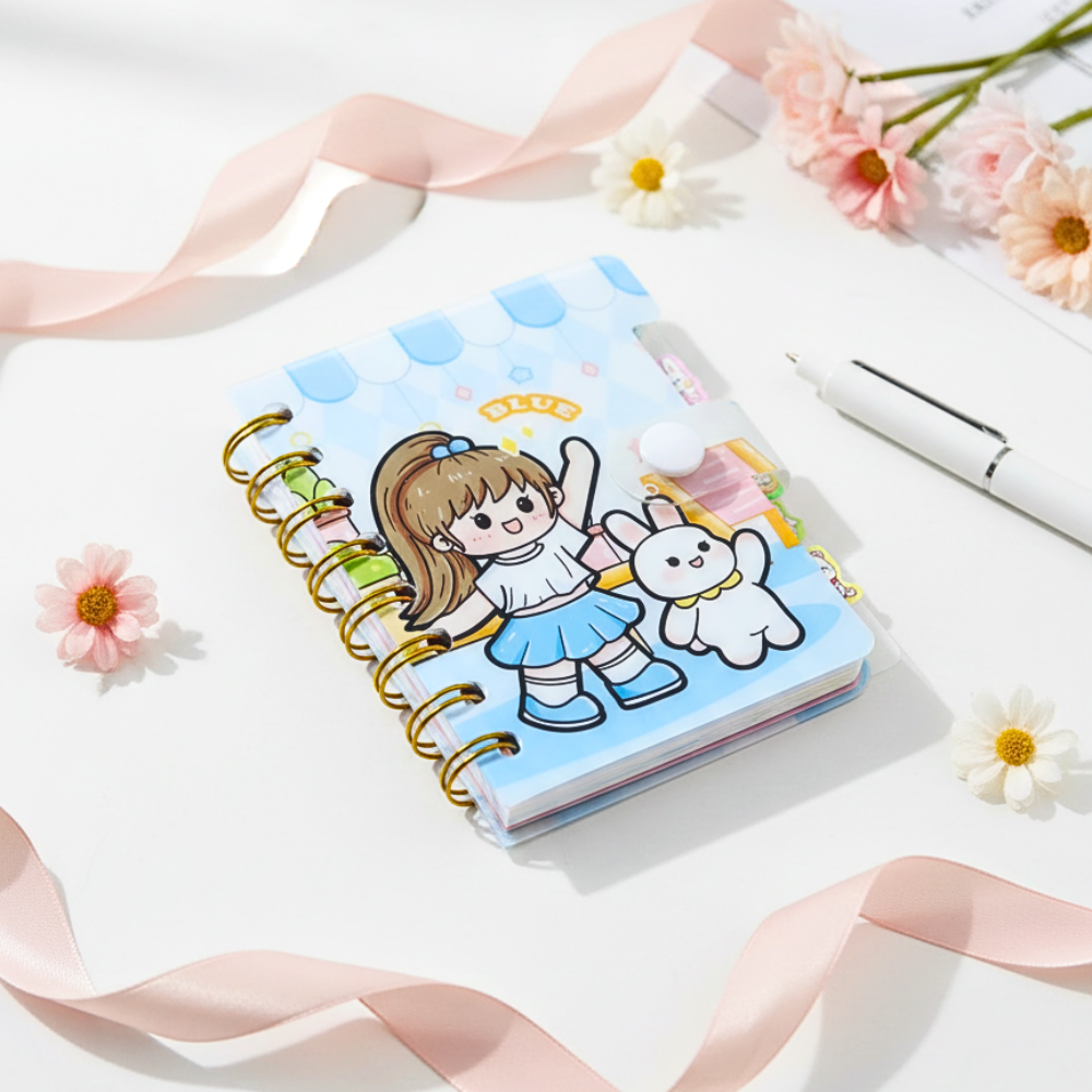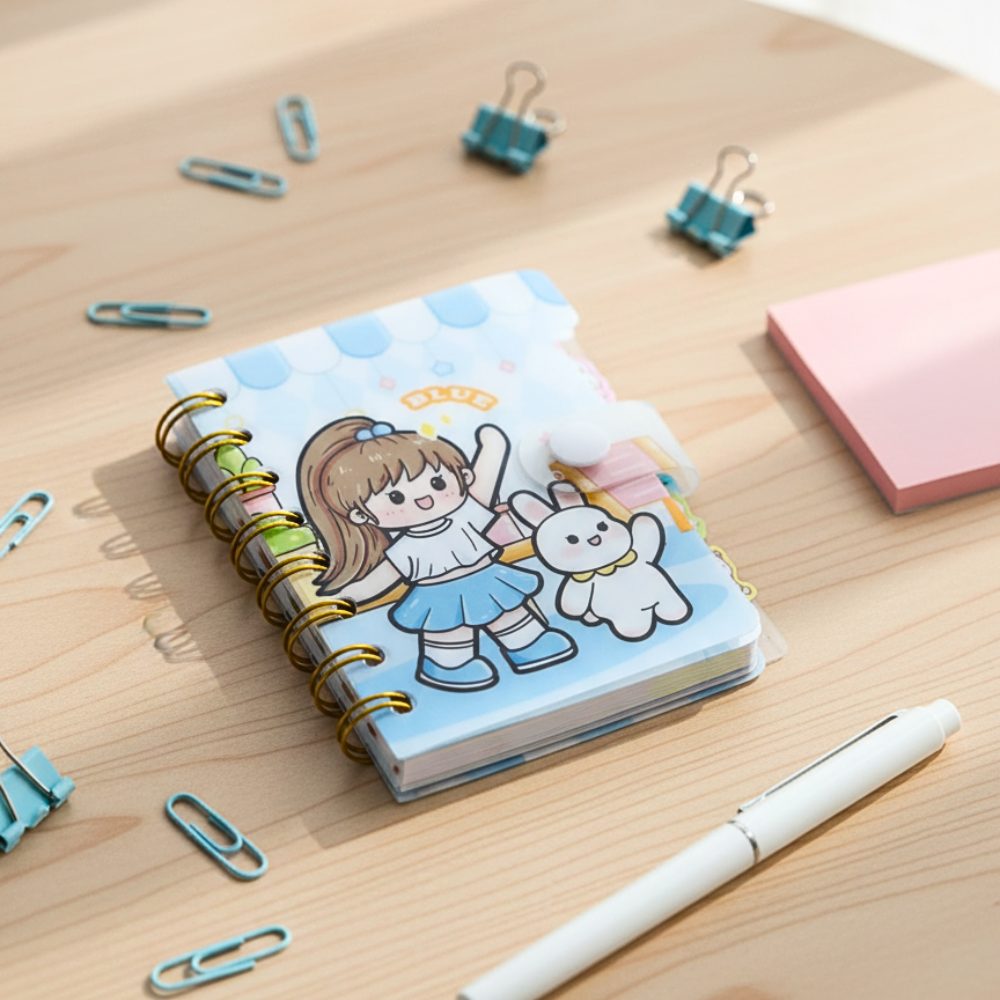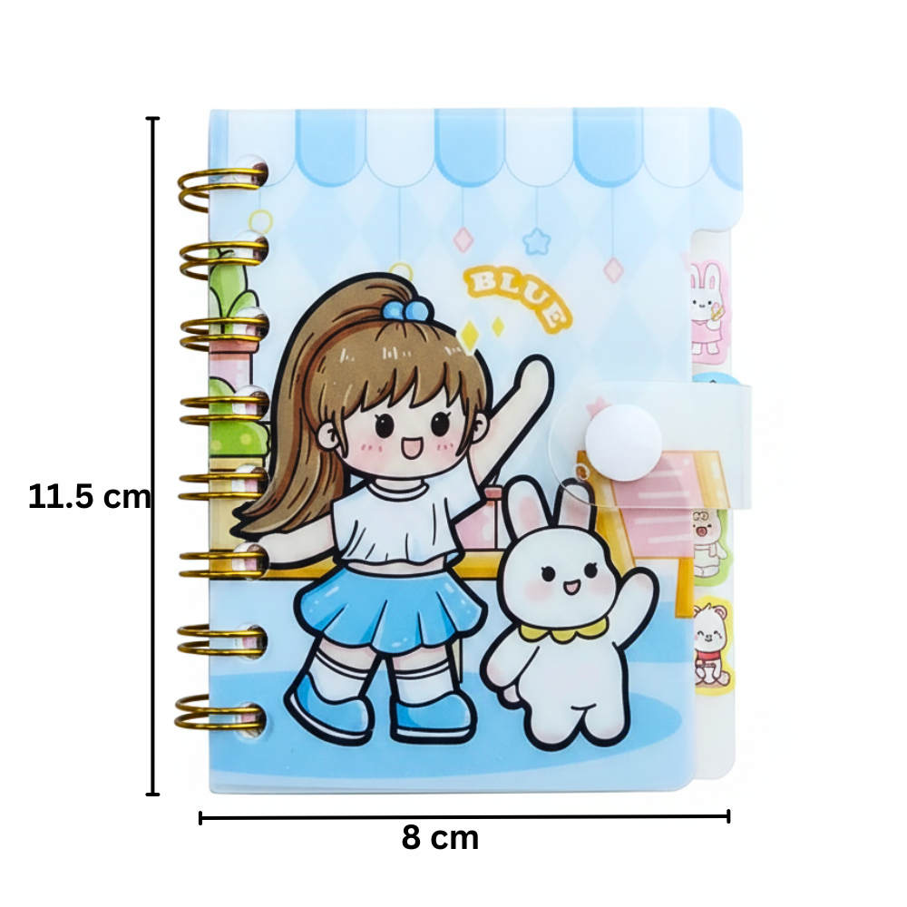 نوته صغيرة بسلك بحجم عملي 8 × 11.5 سم، تصميم كيوت برسوم طفولية جذابة وغلاف متين يحافظ على الصفحات. مناسبة للمدرسة والجامعة وتدوين الملاحظات اليومية، خفيفة وسهلة الحمل داخل الشنطة أو الجيب، مع سلك ذهبي قوي يسهل التقليب والاستخدام اليومي.