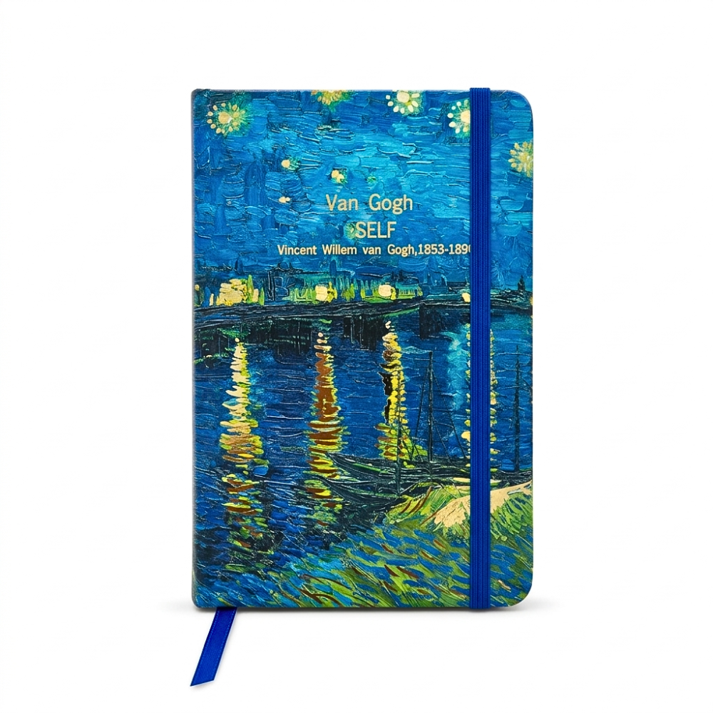 نوت بوك حجم وسط 14×9 سم تصميم فان جوخ هارد كوفر برباط مطاطي