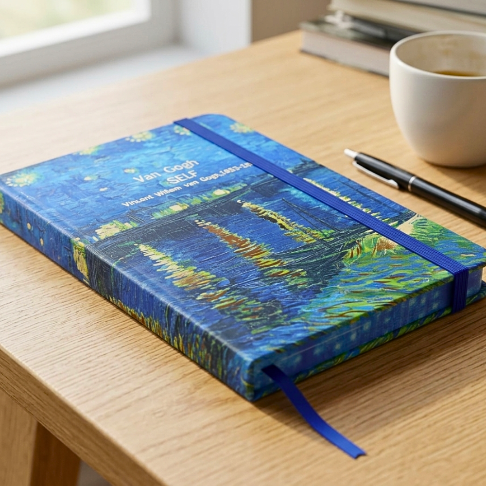 واحدة من أبرز مميزات نوت بوك حجم وسط هي التصميم الخارجي الفريد. مستوحى من أعمال الفنان العالمي فان جوخ، يتميز الغلاف بألوان زاهية وتفاصيل فنية تعكس الجمال والإبداع.