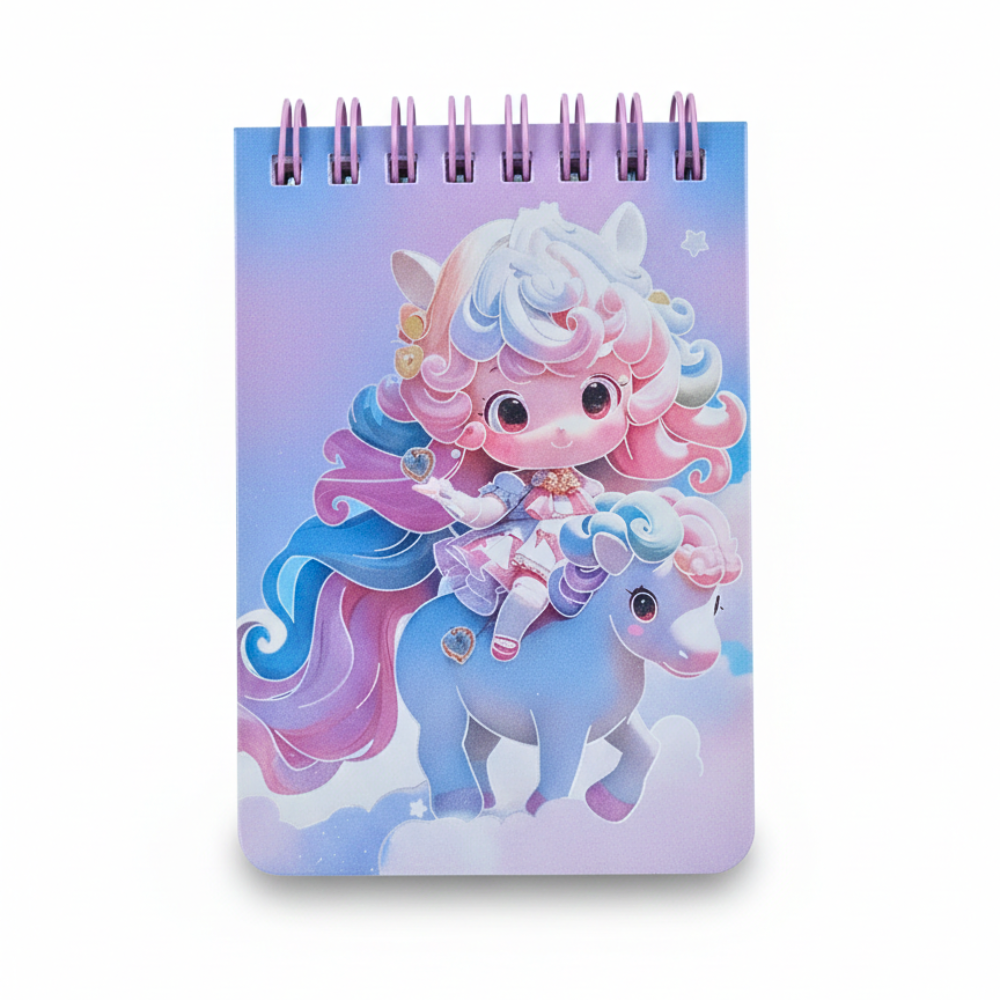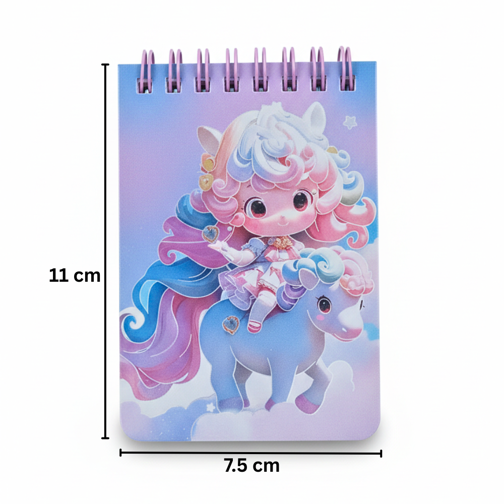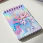 نوت بوك صغيرة سلك هولوجرام 11×7.5 سم – تصميم يونيكورن للأطفال بألوان باستيل جذابة