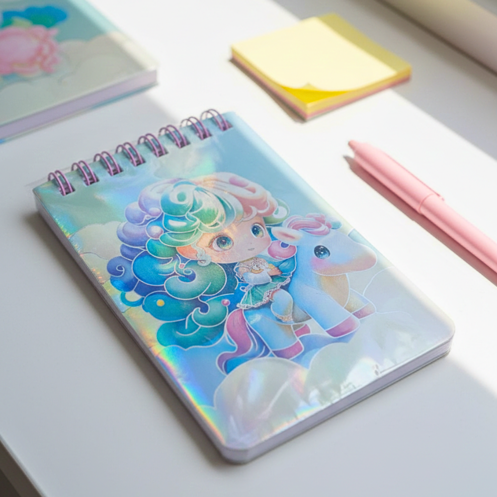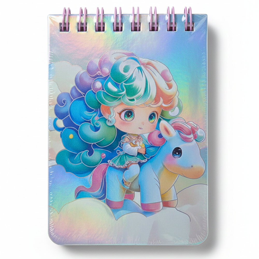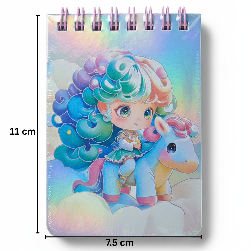 نوت بوك سلك صغيرة هولوجرام بتصميم يونيكورن كيوت وألوان باستيل لامعة تضيف لمسة مميزة لشنطتك أو مكتبك. تأتي نوت بوك بمقاس 11×7.5 سم بحجم عملي وسهل الحمل، مثالية لتدوين الملاحظات السريعة، الأفكار اليومية أو الاستخدام المدرسي، مع غلاف جذاب ولمعة هولوجرام تعكس الإضاءة بشكل رائع. 💜✨