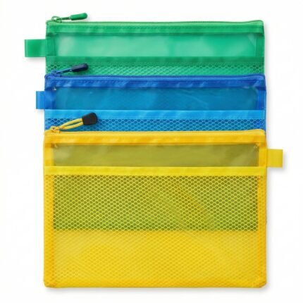 مقلمة شبك شفافة بسوستة عملية مقاس 17×24 سم – حافظة أقلام متعددة الاستخدامات بألوان مختلفة